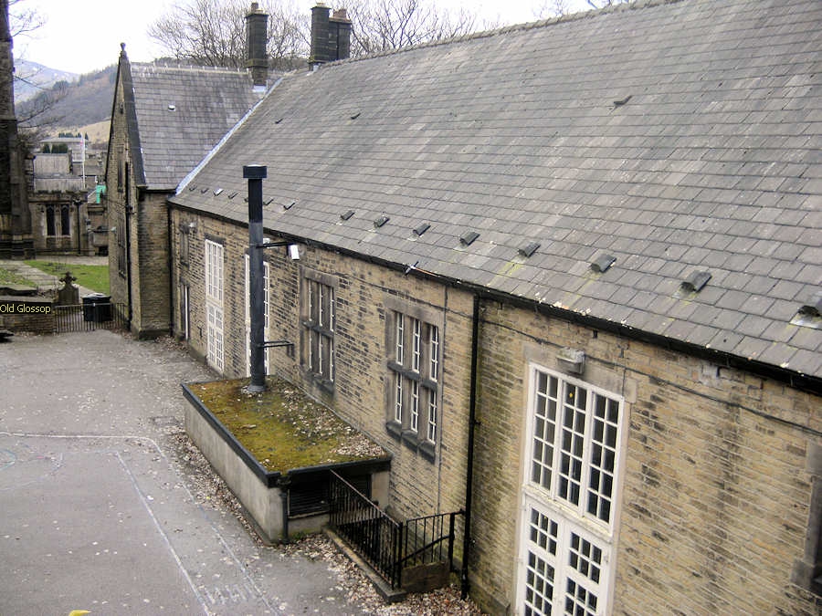 This photo shows the original Catholic girls School Number 46 which was on the corner of Church Street and Thorpe Street. There are traces of outside steps leading up to a small door on the gable end where the children entered school