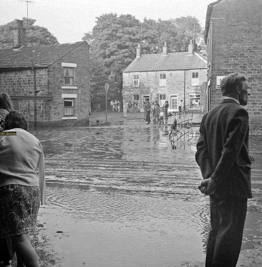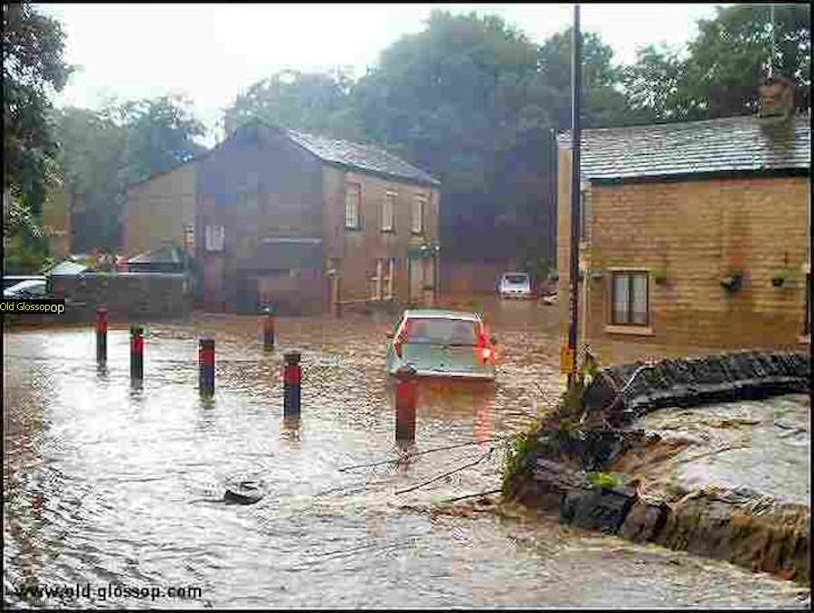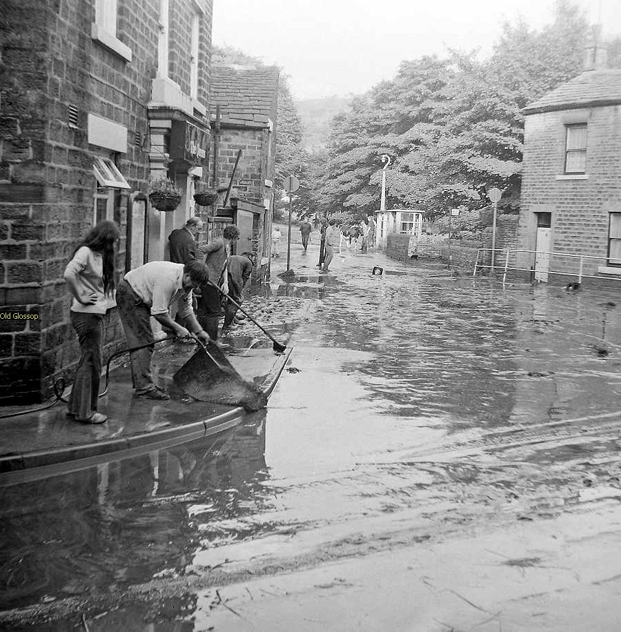 One of the flood pictures shows the old concrete bus shelter which was demolished in the 1990's with planning permission from the High Peak borough council to build an in keeping stone one. Unfortunately Derbyshire County Council got wind of the plans and insisted on a modern out of keeping shelter should be erected so the villagers have not got a shelter now.