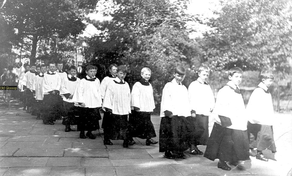Choir processing past Parish Church