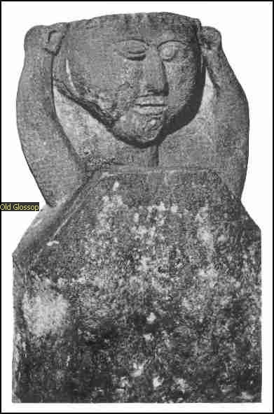 This head which is under protection of a householder in Old Glossop was found near Mossey Lea and other primitive carved stone heads where found in the Vicarage garden among stones that had been taken from the original Christian Mediaeval Church area.