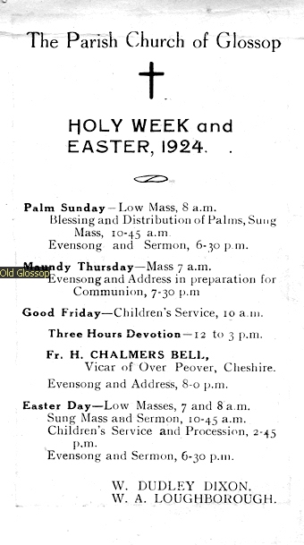Extracts from "Neath Ancient Moss" by friends of Glossop Parish Church and from Glossop, the Official Handbook 1948