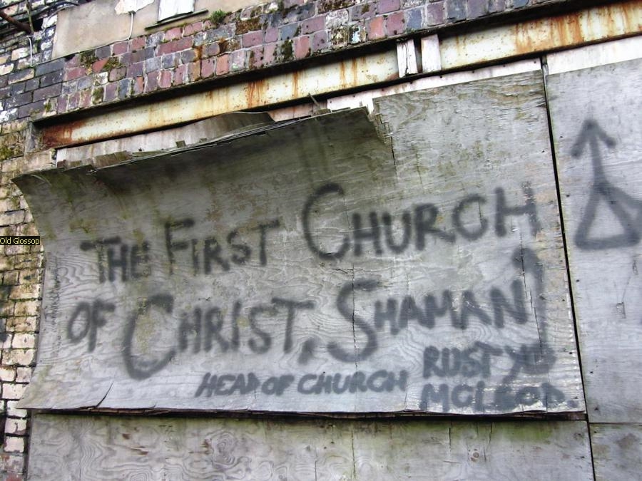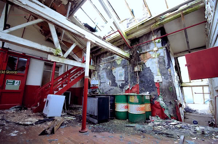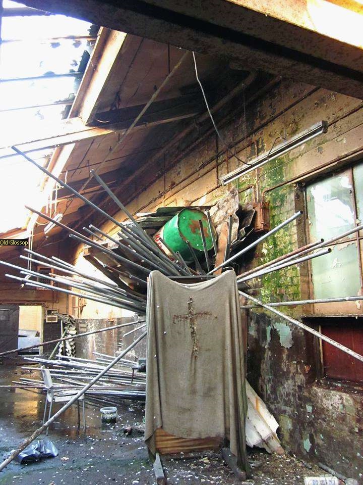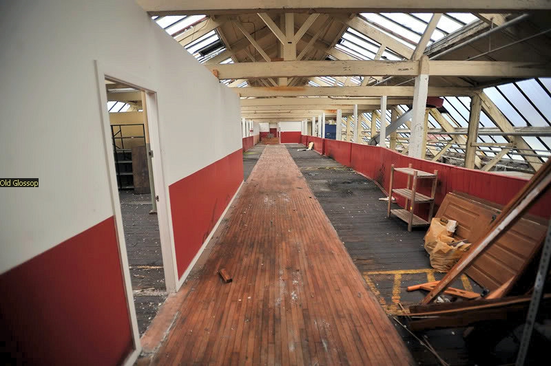 The image on the left is the tempory Glossop Parish Church Nave. The Jacksons who had donated it when the Church was being rebuilt took it back and made Offices from it.