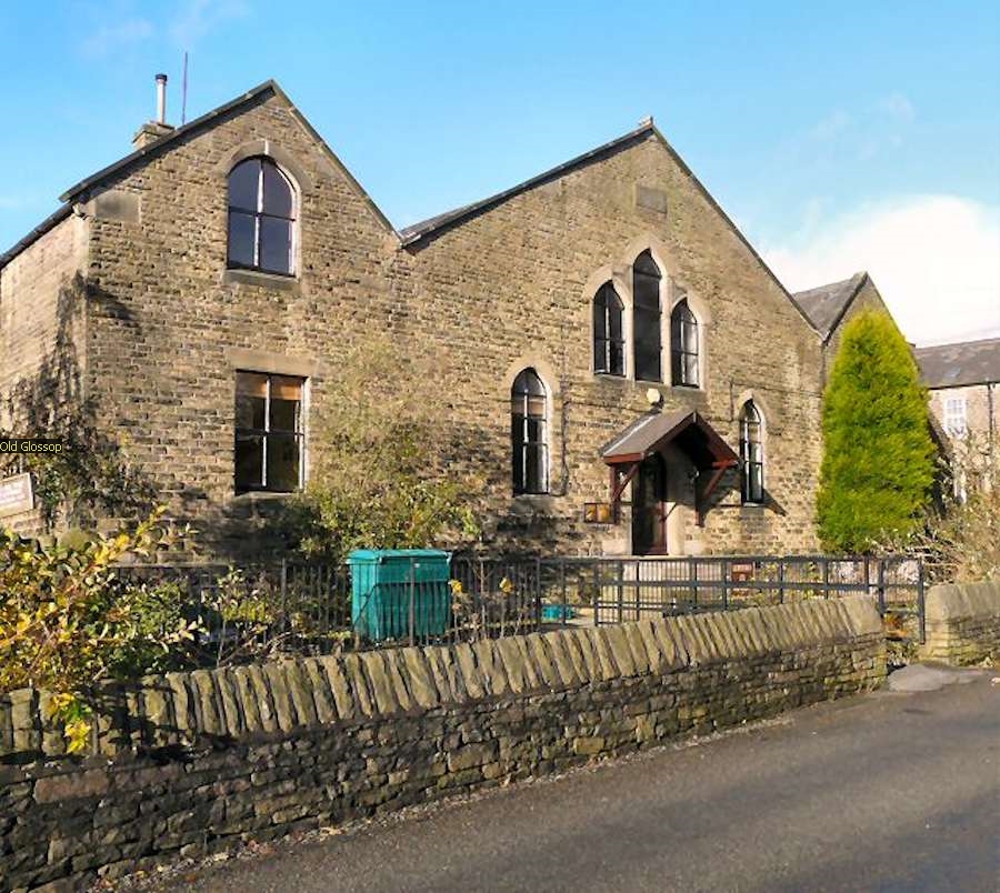 This building, a triple-gabled former (mixed) school building was constructed in 1824 and rebuilt 1876, for 225 children by the Glossop Wesleyan Circuit as a Methodist School.
