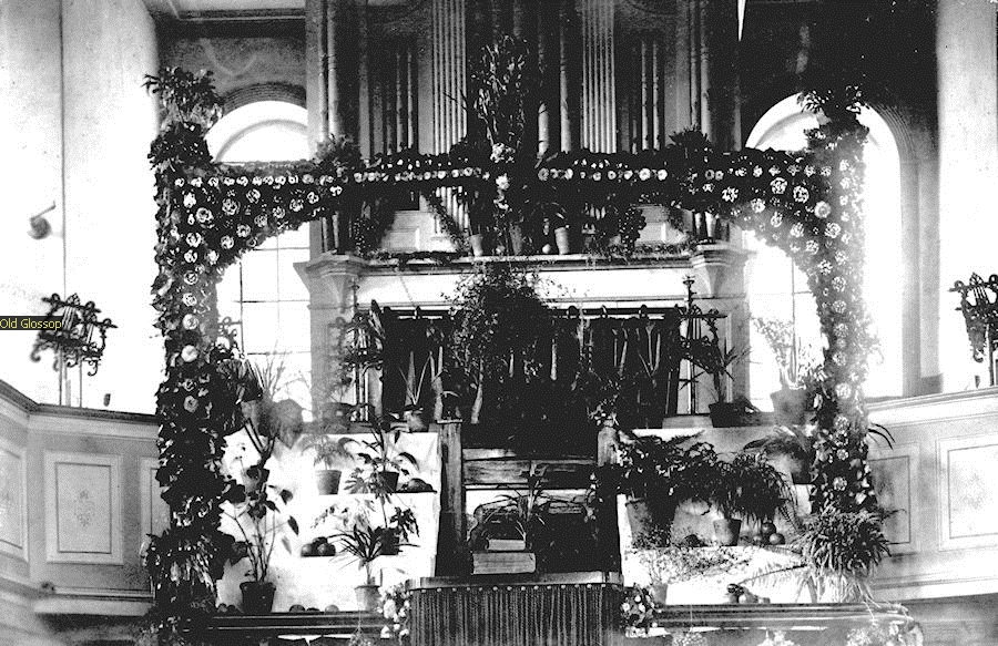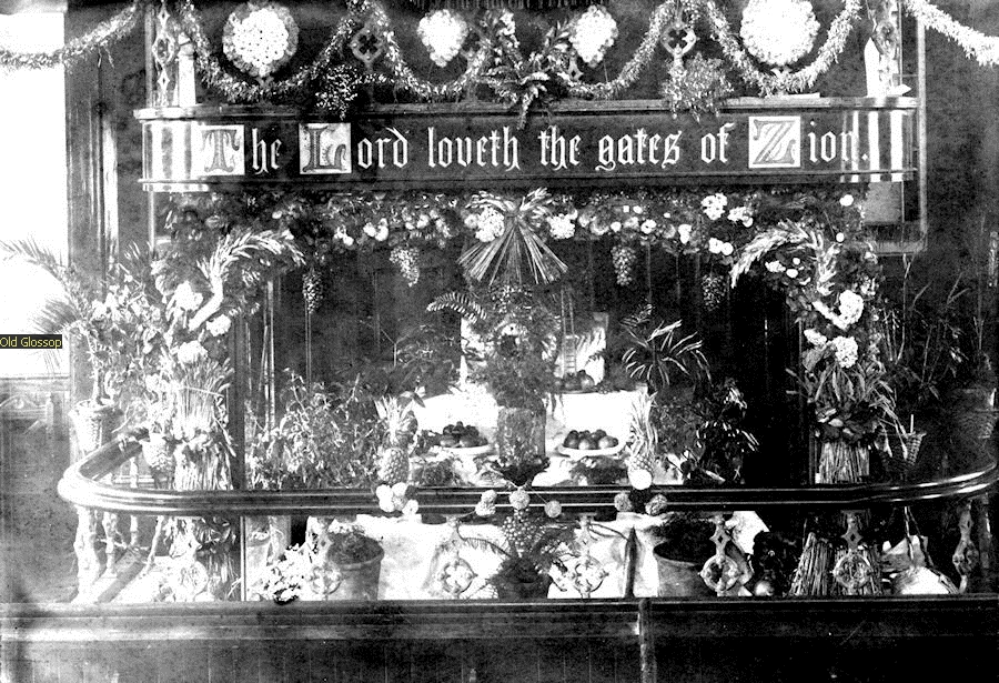 In 1869 there were more building alterations. An organ chamber and vestry were built and the figure of Moses removed. In 1871, Alexander Villa on Talbot Road, Glossop was the Ministers house. In 1890 the freehold of the site was purchased for £215. A new organ was installed in 1894 costing £200. More renovations in 1898 cost £180 when the old windows were replaced with new leaded lights.